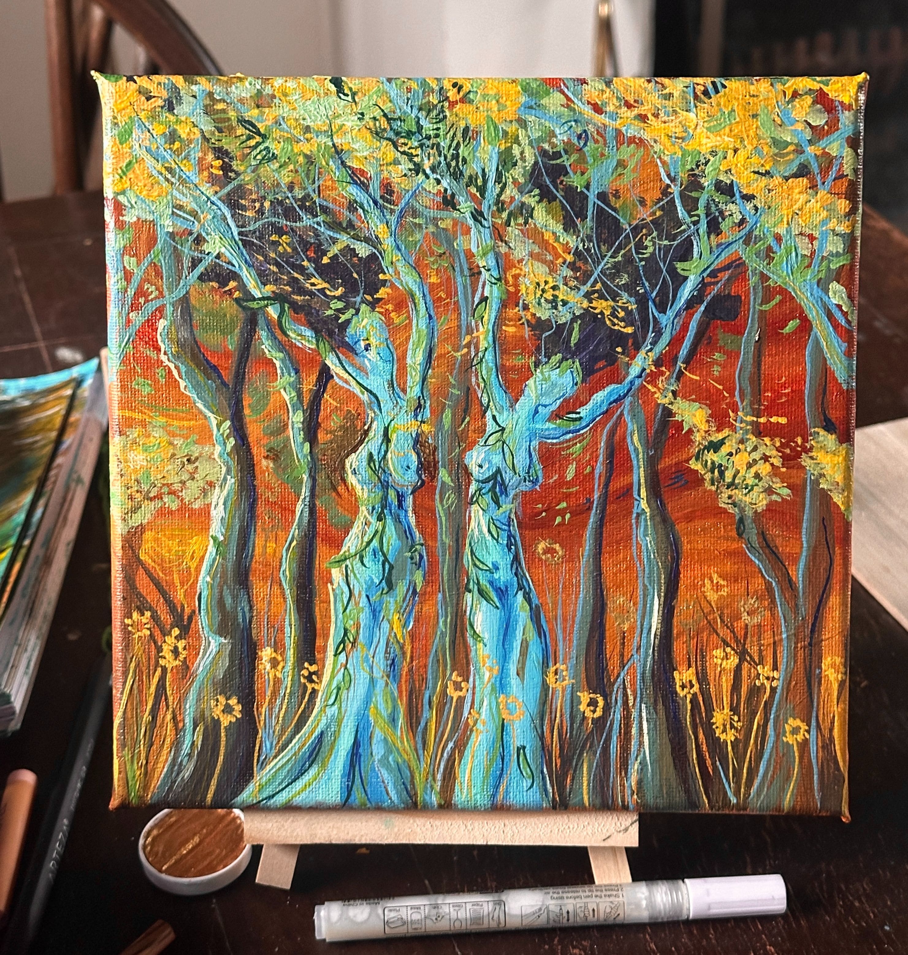 "My paintings explore the natural movement we find in nature, capturing vibrant colours and using layered brushstrokes to create wild and calming landscape scenes"